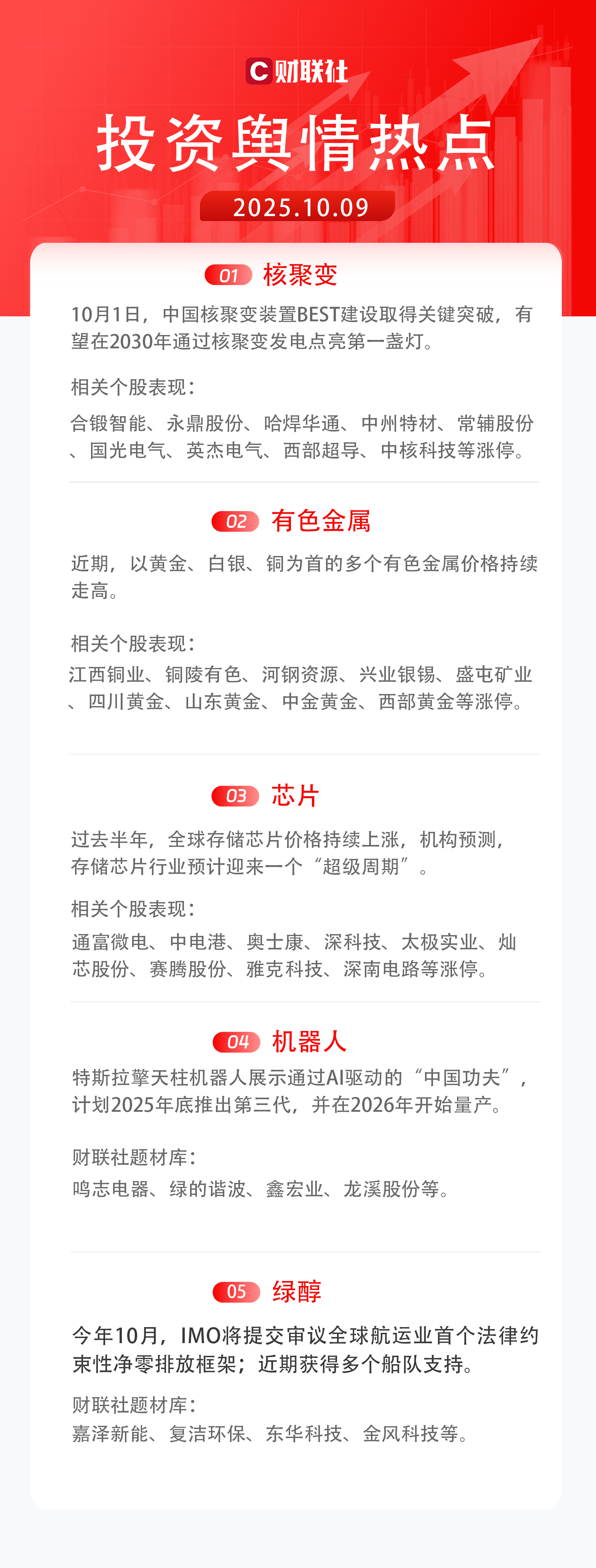 1)核聚变:10月1日,中国核聚变装置BEST建设取得关键突破,有望在2030年通过核聚变发电点亮第一盏灯;10月1日,德国政府在柏林的联邦内阁会议上通过了一项名为“德国迈向核聚变发电站”的行动方案,力图在德国建造世界上第一座核聚变发电站;10月2日,美国聚变工业协会(FIA)正式发布白皮书,以“推动公共部门数据开放”为核心,为全球核聚变产业从“科研攻坚”向“商业落地”转型提供关键路径。