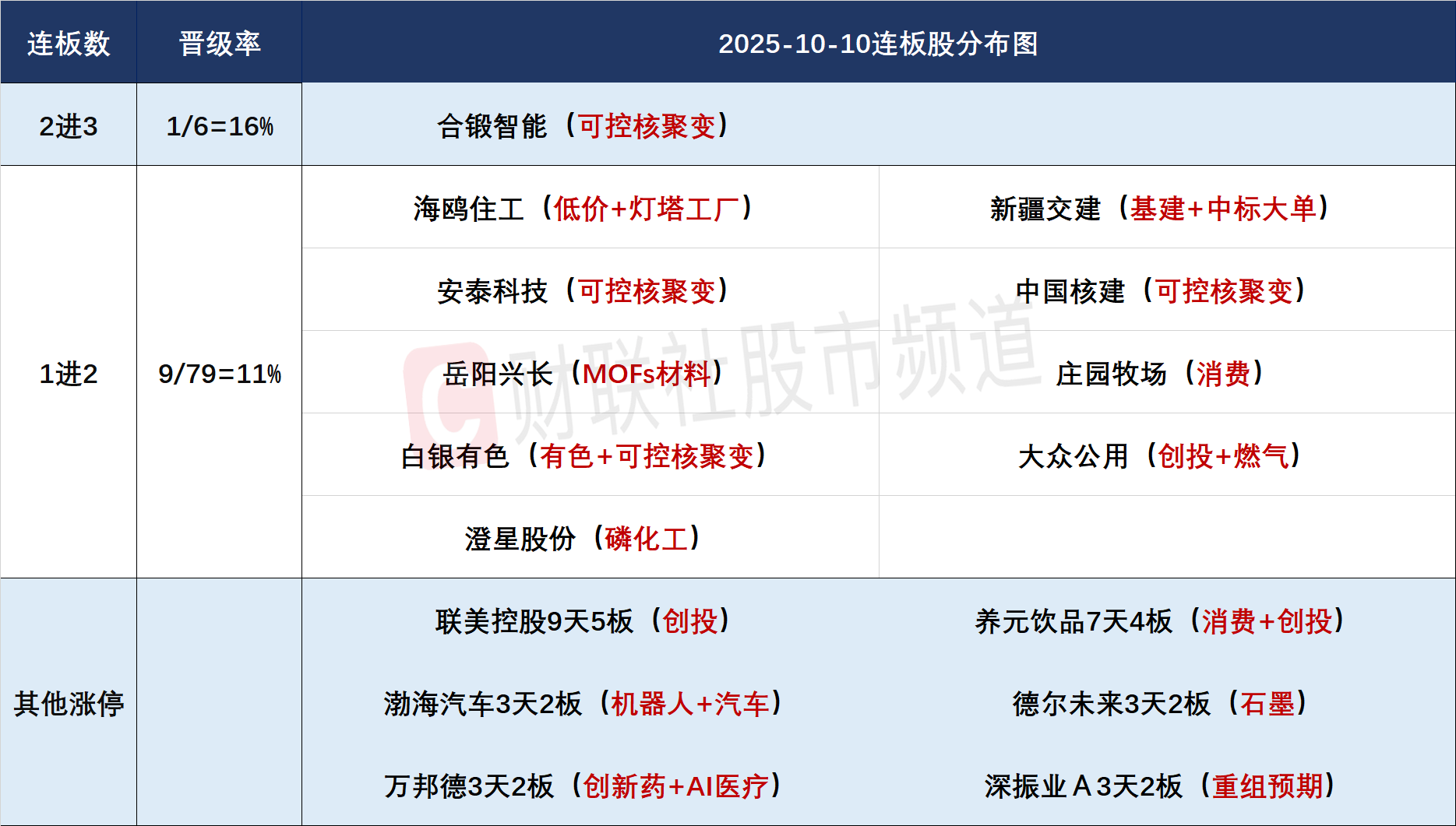 10月10日连板股分析:连板股晋级率仅一成 权重股领跌