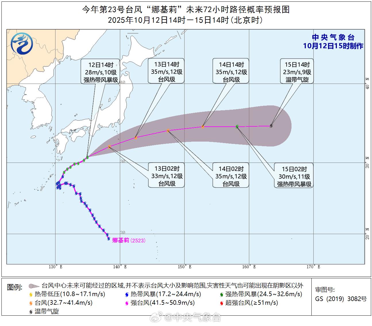财联社10月12日电,据中央气象台,今年第23号台风 “娜基莉”已经在洋面上转向东北方向移动,未来就是强度逐渐减弱并变性为温带气旋,对我国无影响。