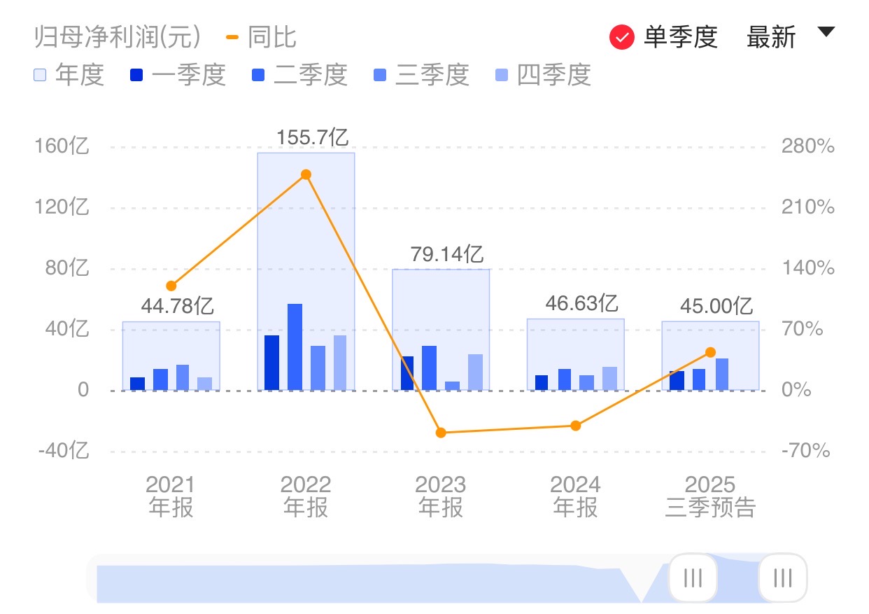财联社10月13日电,盐湖股份(000792.SZ)公告称,公司预计2025年前三季度归属于上市公司股东的净利润为43.00亿元–47.00亿元,比上年同期增长36.89%—49.62%。三季度归属于上市公司股东的净利润为18亿元–22亿元,比上年同期增长97.41%—141.28%。报告期内,氯化钾价格较上年同期上升,带动盈利增长;碳酸锂市场价格下行,但公司整体业绩仍实现同比增长。小财注:Q2净利13.71亿元,据此计算,Q3净利预计环比增长31.29%-60.47%。