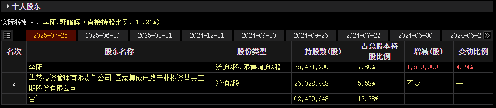 小财注:截至7月25日,大基金二期持有慧智微5.58%股份,为公司的第二大股东。