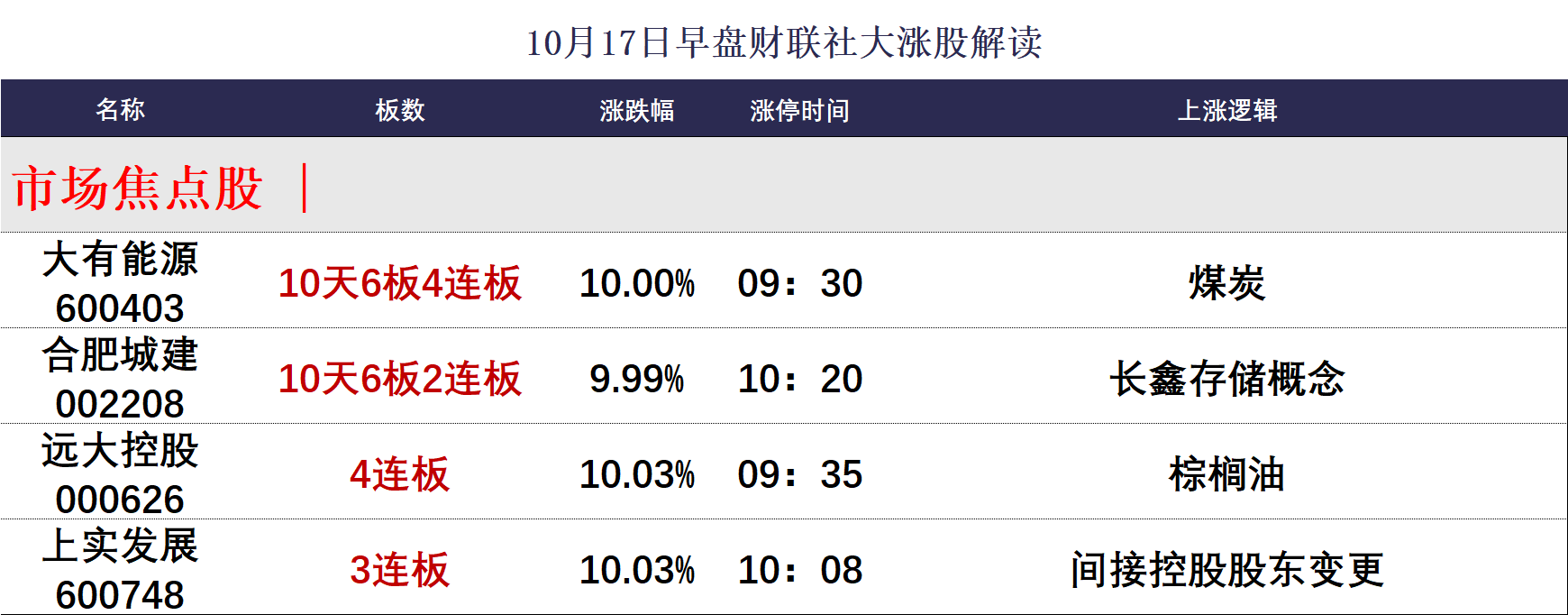 10月17日午间涨停分析